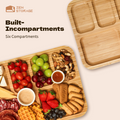 - [Dual-Function Design & Generous Size] Flip between a spacious 11x14 inch bamboo cutting board for food prep and a 6-compartment serving tray for charcuterie, snacks, or veggie platters. Perfect for both everyday use and hosting events.